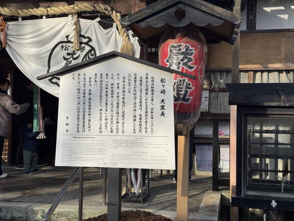 かかっている白い幕には、大黒様由来の米俵らしい意匠が見受けられます。小槌のようにも見えますが、、
