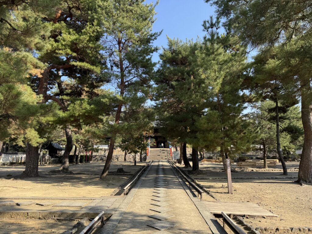 龍の背中は山門である頭から、尾である法堂までまっすぐ続きます